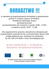 Przypominamy !!! W ramach naboru na granty 2/2018/G - Akademia Wolnego Czasu, można otrzymać 10 punktów za doradztwo.