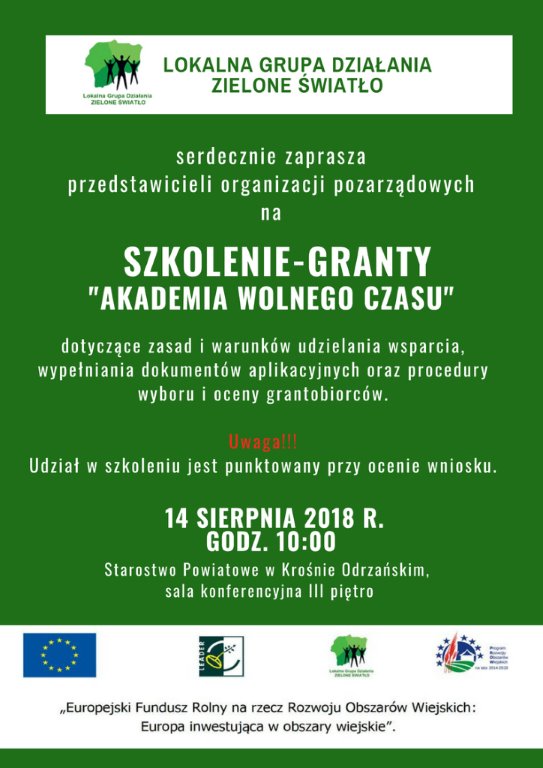 14.08.2018 r. przyszli grantobiorcy po raz kolejny mieli okazje do zapoznania się z zasadami i warunkami udzielania wsparcia, wypełniania dokumentów aplikacyjnych oraz procedury wyboru i oceny Grantobiorców. Udział w szkoleniu był punktowany przy ocenie wniosku.