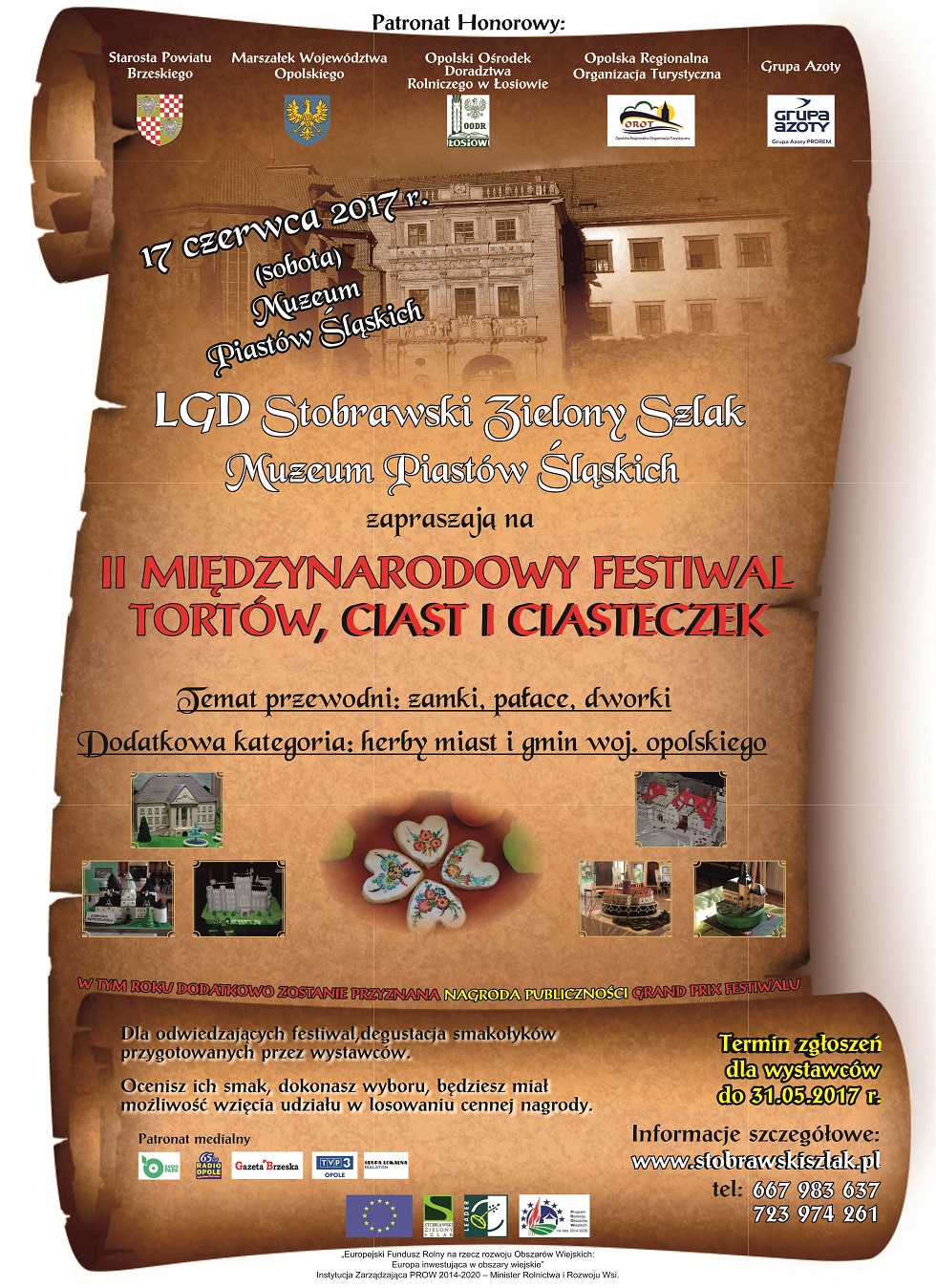 Stowarzyszenia LGD Stobrawski Zielony Szlak zaprasza na Festiwal tortów, ciast i ciasteczek. Wyżywienie i nocleg dn. 16.06.2017 jest w pełni pokrywany przez organizatora i uczestnik nie ponosi żadnych kosztów.