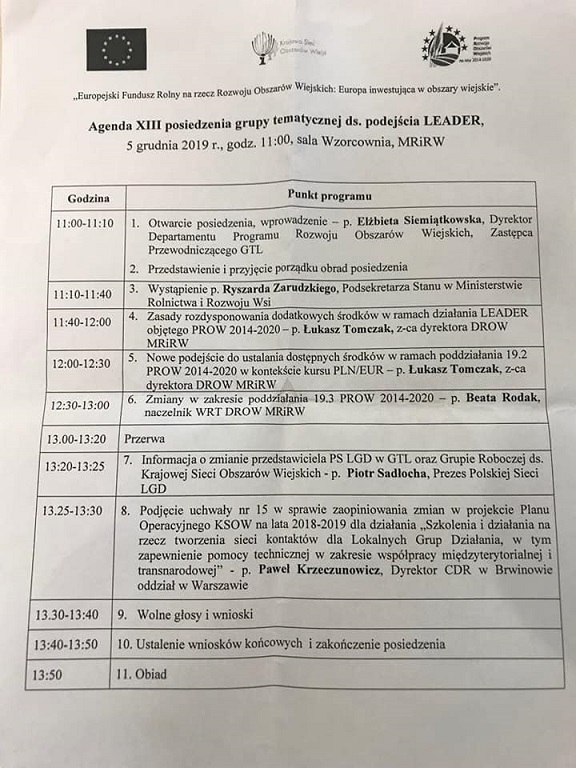 Zaprezentowane zostały, opracowane w ministerstwie, zasady rozdysponowania dodatkowych środków (30 mln euro) jakie w ramach Programu Rozwoju Obszarów Wiejskich na lata 2014-2020 planowane są do przesunięcia do działania LEADER objętego tym Programem.