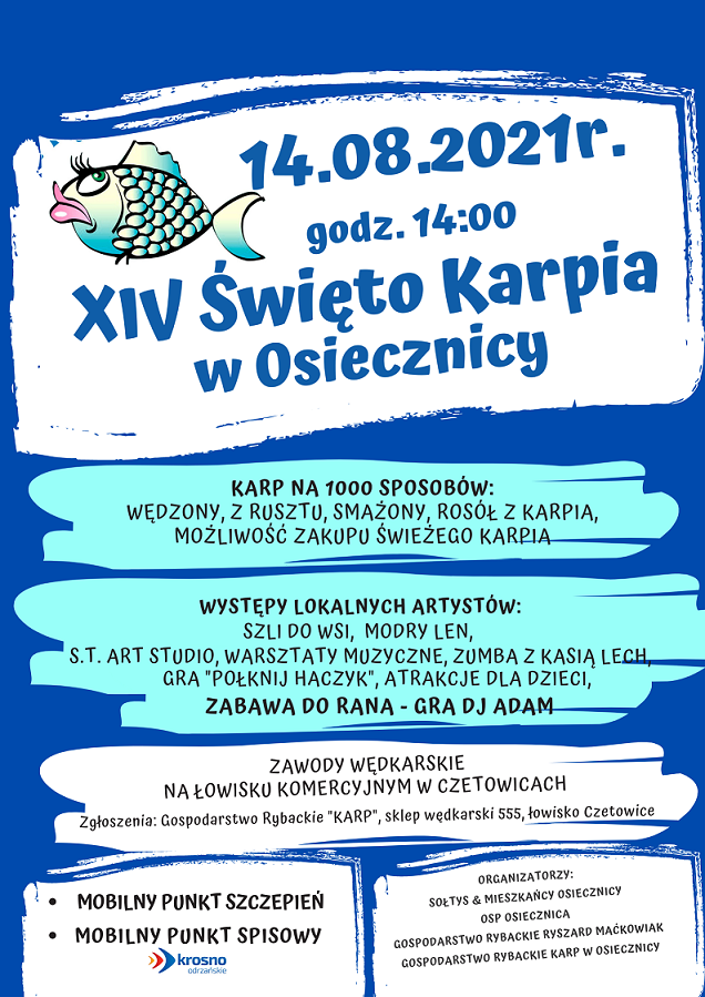 14 sierpnia 2021r. o godzinie 14:00 w Osiecznicy odbędzie się 14 Święto Karpia.