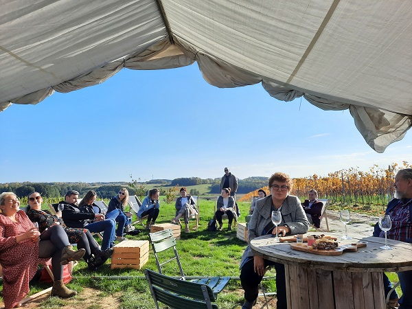 Kolejnym punktem naszej wycieczki była "Winnica Aris”, gdzie zostaliśmy miło ugoszczeni przez jej właściciela. Pogoda dopisywała, także mogliśmy się delektować smakiem przepysznego wina w pięknych okolicznościach przyrody. Po zwiedzaniu winnicy ruszyliśmy do Gryżyna do ośrodka "Anapausis” na obiad. Tam też spotkaliśmy się z właścicielem "Anielskim Ogrodów”, który przedstawił nam swoją koncepcją ekologicznego gospodarstwa rolnego z przydomowym ogrodem. Po spotkaniu mieliśmy okazję zobaczyć je na żywo. Dzień zakończyliśmy kolacją w Pałacu Brzeźnica.
