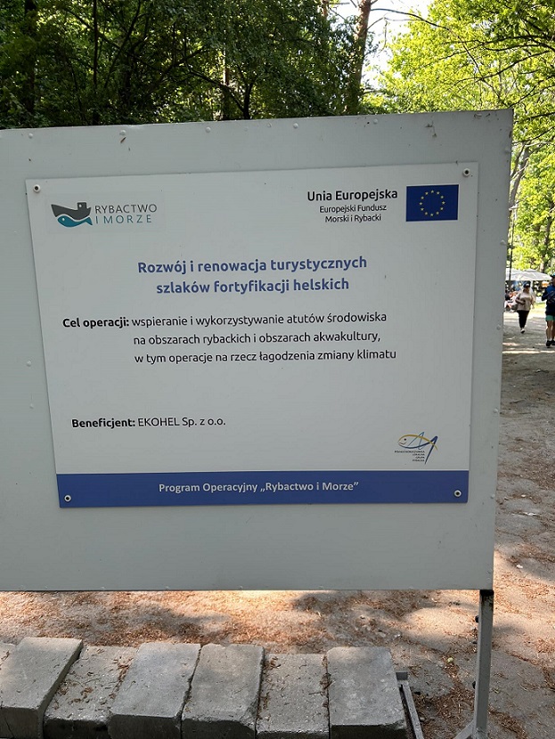 • "Rozwój i renowacja turystycznych szlaków fortyfikacji helskich”. Fortyfikacje Półwyspu Helskiego są jednym z najciekawszych zespołów umocnień w Polsce powstałych przed, w trakcie i po II wojnie światowej. Odnalezienie najciekawszych obiektów ułatwiają wytyczone szklaki turystyczne. Są to szlaki piesze i rowerowe. Na obszarze Helu wytyczonych zostało siedem takich szlaków, ich przebieg przedstawiony jest na tablicach informacyjnych, ustawionych na początkach szlaków. W ramach projektu planowana jest wymiana 11 szt. istniejących, uszkodzonych tablic informacyjnych (stelaże pozostaną) oraz uzupełnienie oznakowania poszczególnych obiektów fortyfikacyjnych poprzez opracowanie i ustawienie 20 szt. nowych tablic z planszami informacyjmi o obiektach. Realizacja projektów przy wykorzystaniu środków z Unii Europejskiej z Programu Operacyjnego „Rybactwo i Morze” 2014 – 2020 z ramach Europejskiego Funduszu Morskiego i Rybackiego, poprzez: Stowarzyszenie Północnokaszubska Lokalna Grupa Rybacka, Urzad Marszalkowski Wojewodztwa Pomorskiego.