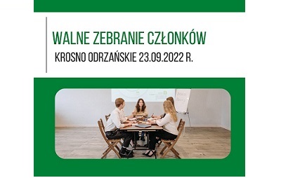 Uprzejmie informuję, że w dniu 23 września 2022 roku , o godzinie 15:45 ( I termin) , godzina 16:00 (II termin) w Starostwie Powiatowym w Krośnie Odrzańskim, w sali konferencyjnej (sala nr 306, III piętro) odbędzie się Walne Zebranie Członków stowarzyszenia „Lokalna Grupa Działania Zielone Światło”.