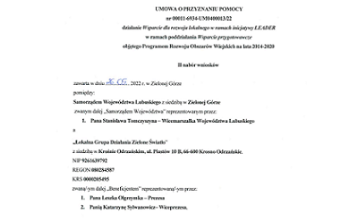 W dniu 26 maja br. prezes naszego LGD Leszek Olgrzymek wspólnie z wiceprezes Katarzyną Sylwanowicz w obecności marszałka Stanisława Tomczyszyna oraz dyrektora PROW Arkadiusza Dąbrowskiego podpisali umowę na wsparcie przygotowawcze - okres wypracowania Lokalnej w Strategii Rozwoju na nową perspektywę finansową UE 2021-2027.